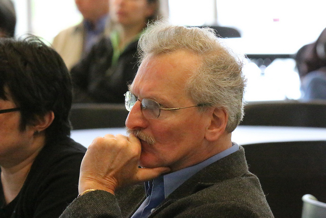 Shoreline Community College Trustee Tom Lux listens during the All-Campus Meeting, May 9, 2014. MORE PHOTOS