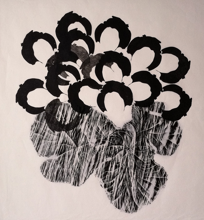 In a show that represents an ongoing investigation of a self-created fable, Jean delights in the synchronicity of things, considering intersections of intimate and infinite experience that reinforce a sense of wonder. Jean’s inventive printmaking and sculpture easily crosses mediums combining materials/media and uses methods of casting, assemblage and relief printing.