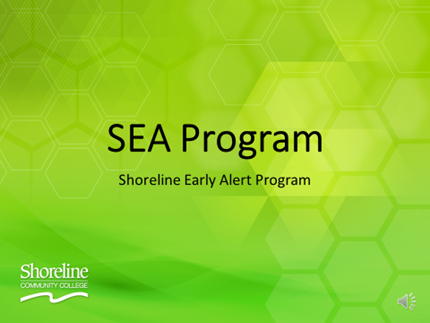The Advising Center has created an early alert system called Shoreline Early Alert (SEA). SEA is designed to help students who are encountering difficulty in the pursuit of their academic goals.