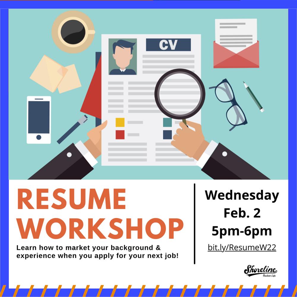 Dust off your resume and get ready for your next transfer or job application by attending this upcoming workshop! Participants will learn about tips and tools to help them maximize their marketability. See you on Wednesday, Feb. 2, at 5 pm on Zoom (https://bit.ly/ResumeW22).
