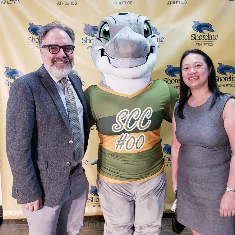 Trustee Rebecca Chan, President Jack Kahn, staff, and the best students ever, enjoyed celebrating our new “Dolphie”! What a great day to be a PHINATIC ![]()