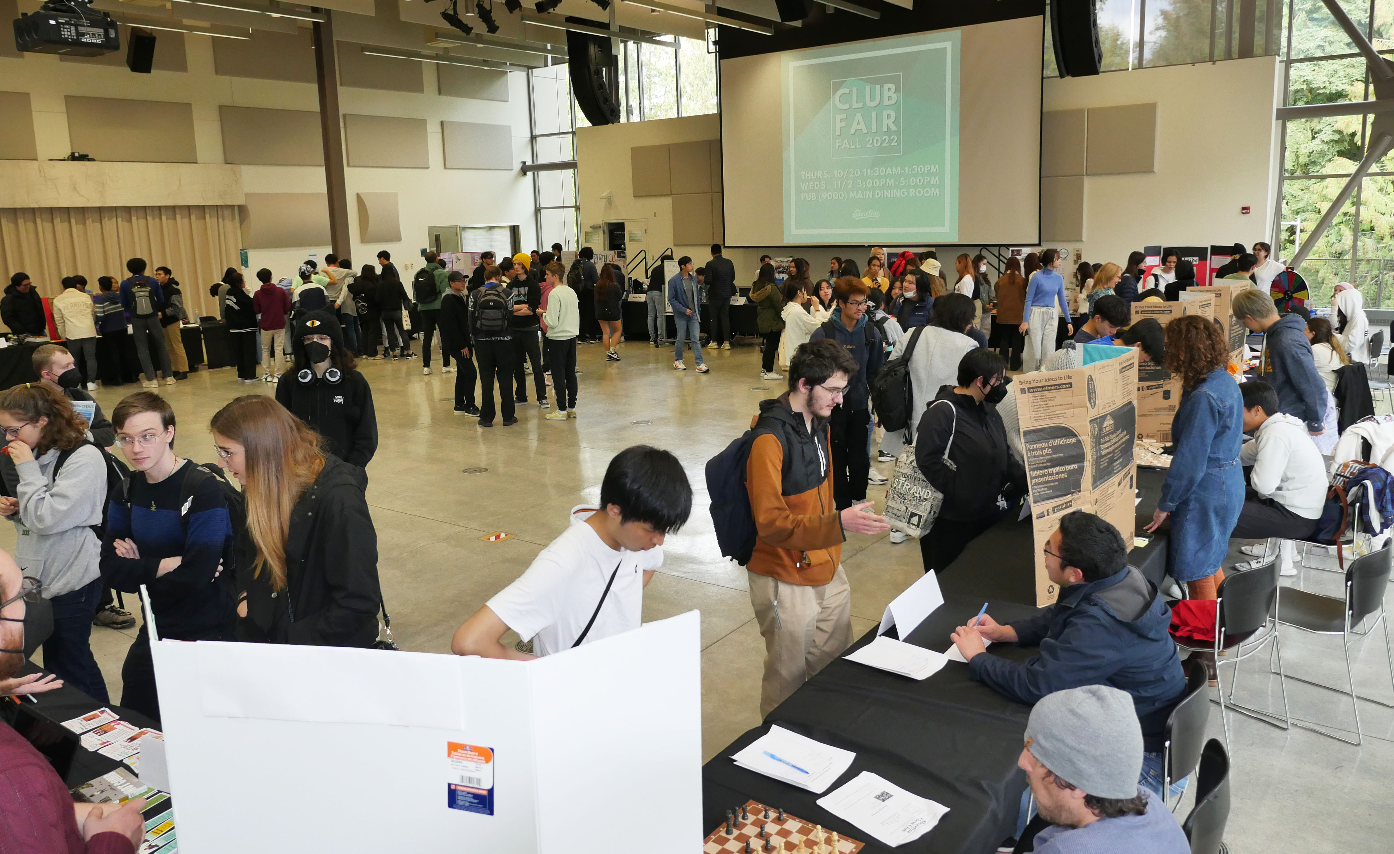Student Life attracted lots of club enthusiasts to the Main Dining Room Wednesday, November 3 where they learned about and signed up to participate in Shoreline’s numerous clubs. The fair was originally scheduled in October but was postponed due to air quality concerns that closed campus. Organizers Sundi Musnicki, Director of Student Life, and Michaela Smith, Program Manager weren’t sure whether the new time slot would bring out enough students but were delighted when so many showed. Instructor Jeff Kashiwa and his student band entertained fair attendees and others in the PUB lobby. Several campus employees commented on the excitement in the air from the vitality of returning to campus.