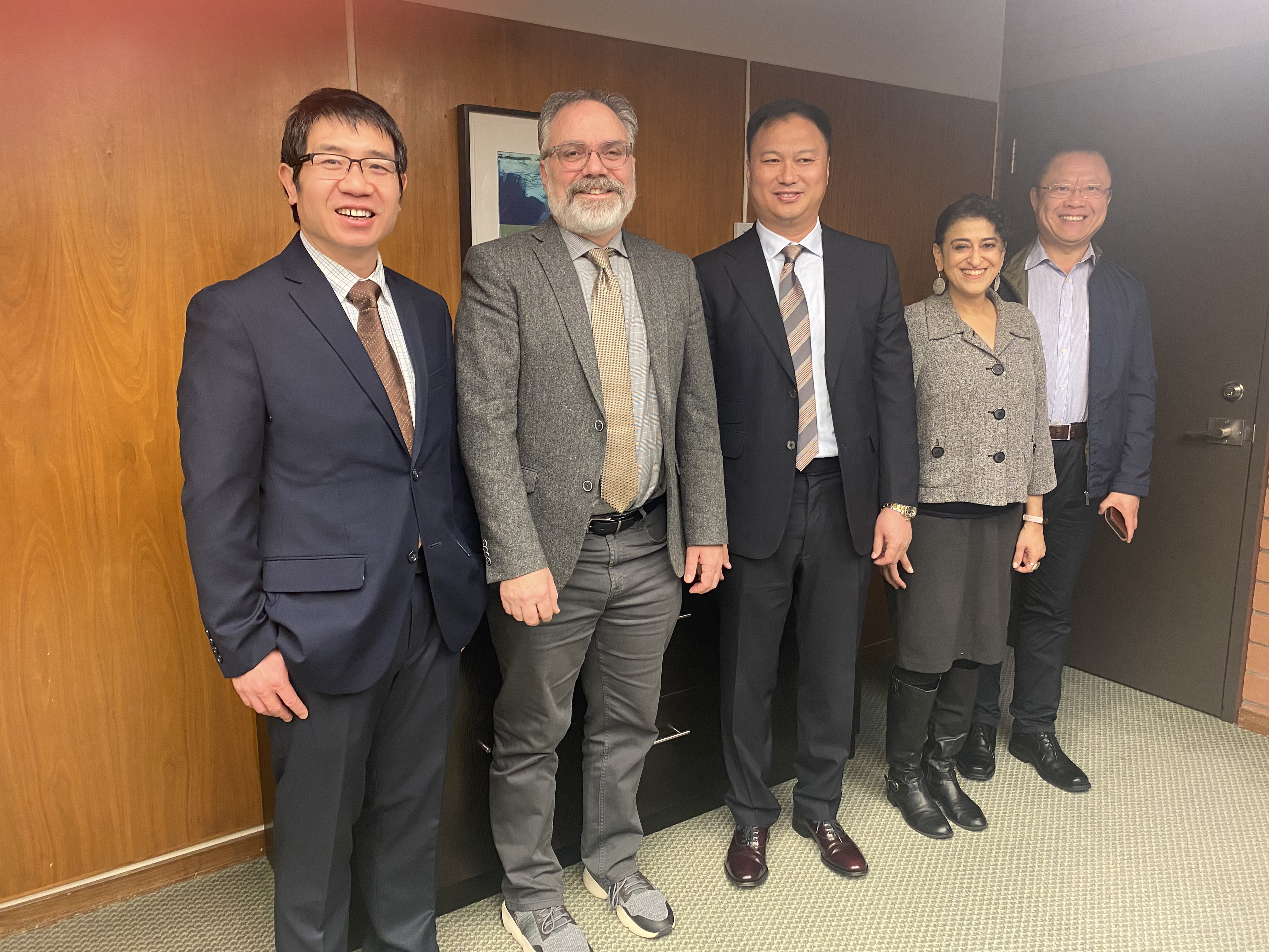 President Jack Kahn had the opportunity to welcome Director Dai Wenhua from the Hebei Institute of China’s prestigious Tsinghua University to Shoreline. Mr. Dai is the Director of Development Planning of External Relations at the Hebei institute in Beijing, which was founded jointly by the Hebei Provincial Government and Tsinghua University. The mission of the institute is to provide education training and economic and social development advisory services to government agencies and state-owned corporations in the province. International education promotion and global engagement is an important component of their programs. Shoreline has been partnering with the institute for several years prior to the pandemic. Associate Vice President of International Education & Global Engagement, Samira Pardanani, and Director of International Outreach, Bo Fu have met with them multiple times, including a visit to Tsinghua in Beijing in 2019. Accompanying Director Dai was Aaron Quan, a local partner who has worked with Shoreline for several years and regularly refers students to the College.