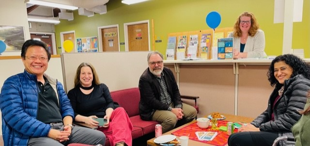 This event was very successful – with lots of people (including students) attending! The event featured balloons, coloring on a “Welcome” poster, and a fun accreditation game.