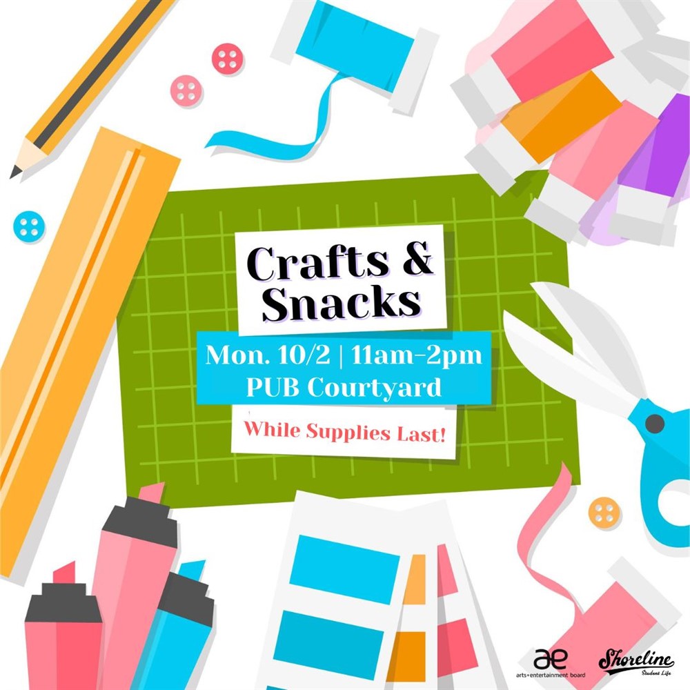 Get in touch with your creative side at the next Crafts & Snacks event on Mon. 10/2 from 11am-2pm in the PUB Courtyard. Make your own keychain, phone charm, or canvas art – all supplies AND snacks are provided!