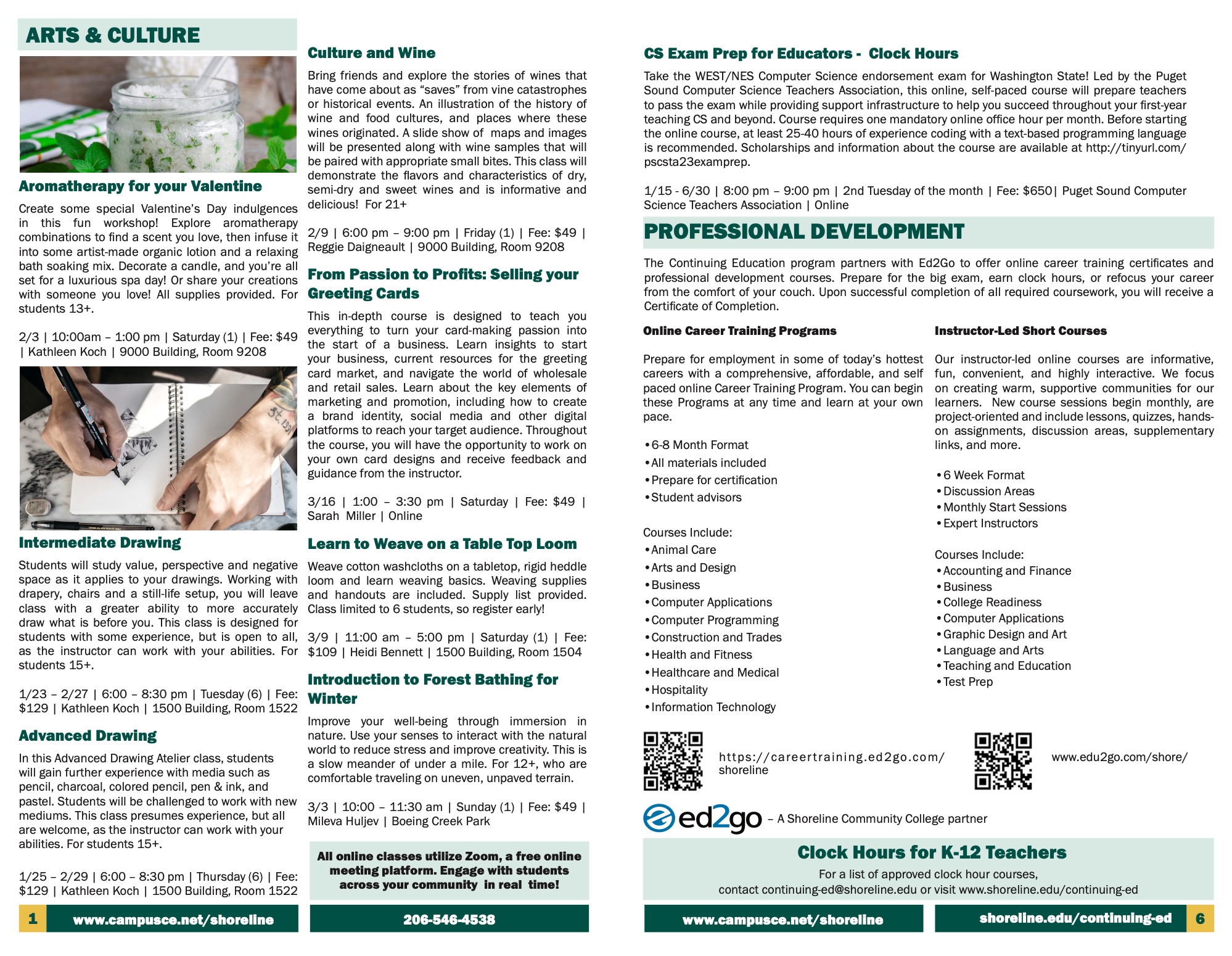 Check out the Shoreline CC Continuing Education classes in the Winter 2024 brochure! Printed copies also available on campus.
