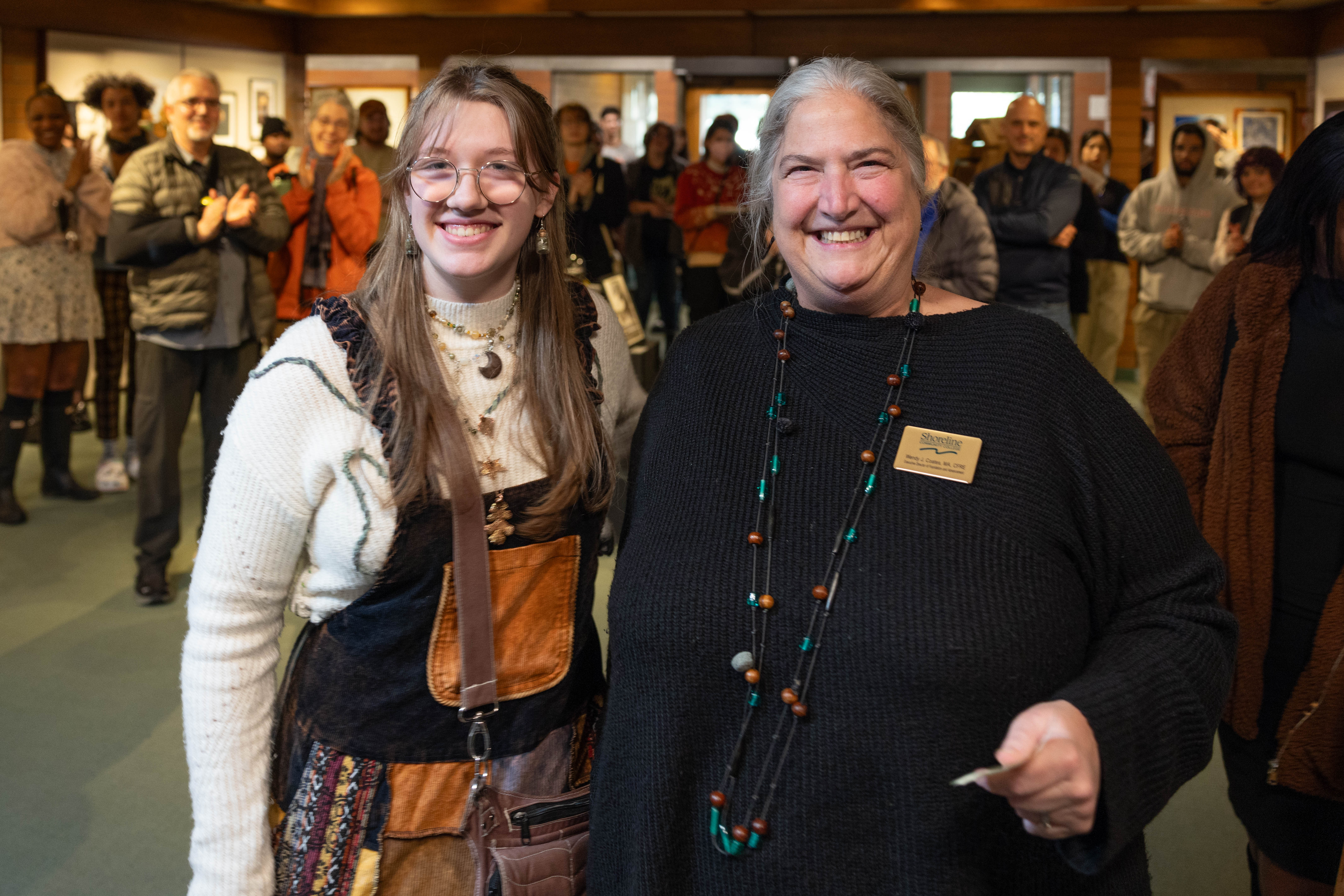 Last week I attended the inspiring Student Art Show Gallery opening. These shows are always terrific events, but this time I had the daunting challenge of choosing a winner for the President’s Choice award. IT WAS SO HARD!! I walked through the gallery about 17 times trying to narrow down my choices. After a lot of deliberation, I gave the President’s Award to Ashley Mwalimu who had several beautiful pieces in the show. Thank you to Zach Mazur, our donors, and the Shoreline Community College Foundation for sponsoring the event and the awards as well!