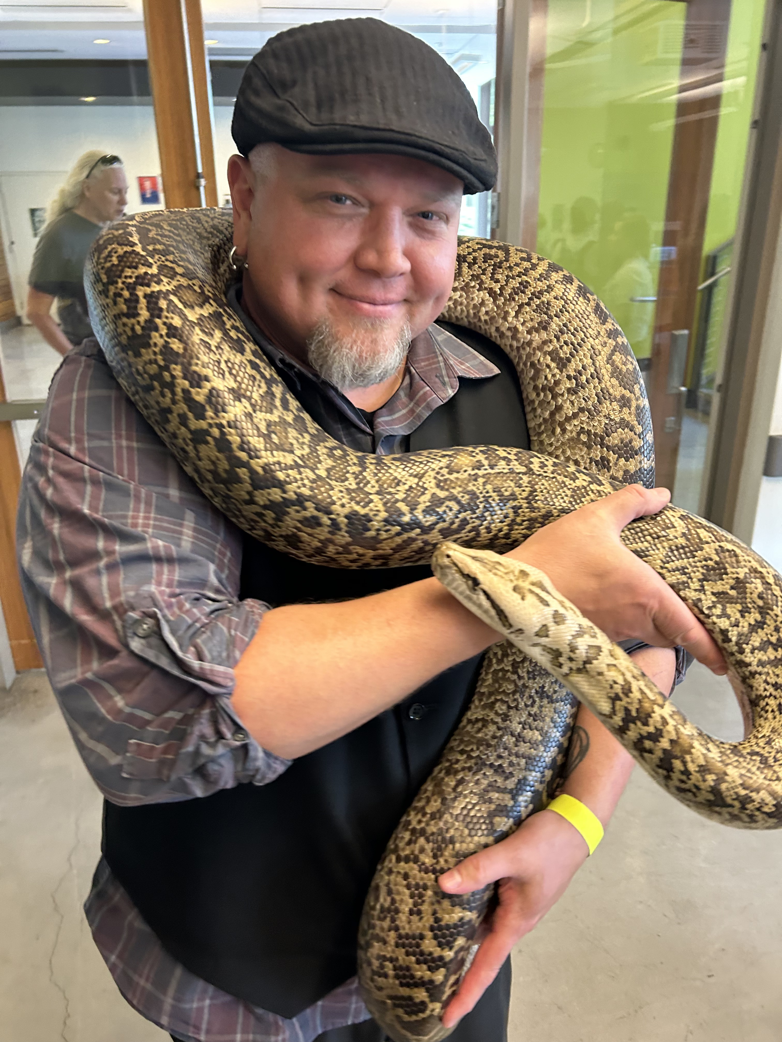 And now I KNOW I made the right hire for VP of Student Services. Ryan Aiello, Ph.D. featured with his new snake friend on his second day of work here!