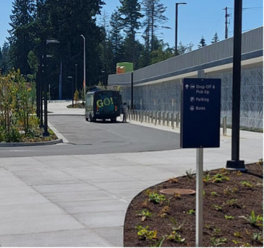 - Exit the Link Light Rail platform and walk east (away from the platform and I-5), toward the “Pick Up & Drop Off” outlined in green below