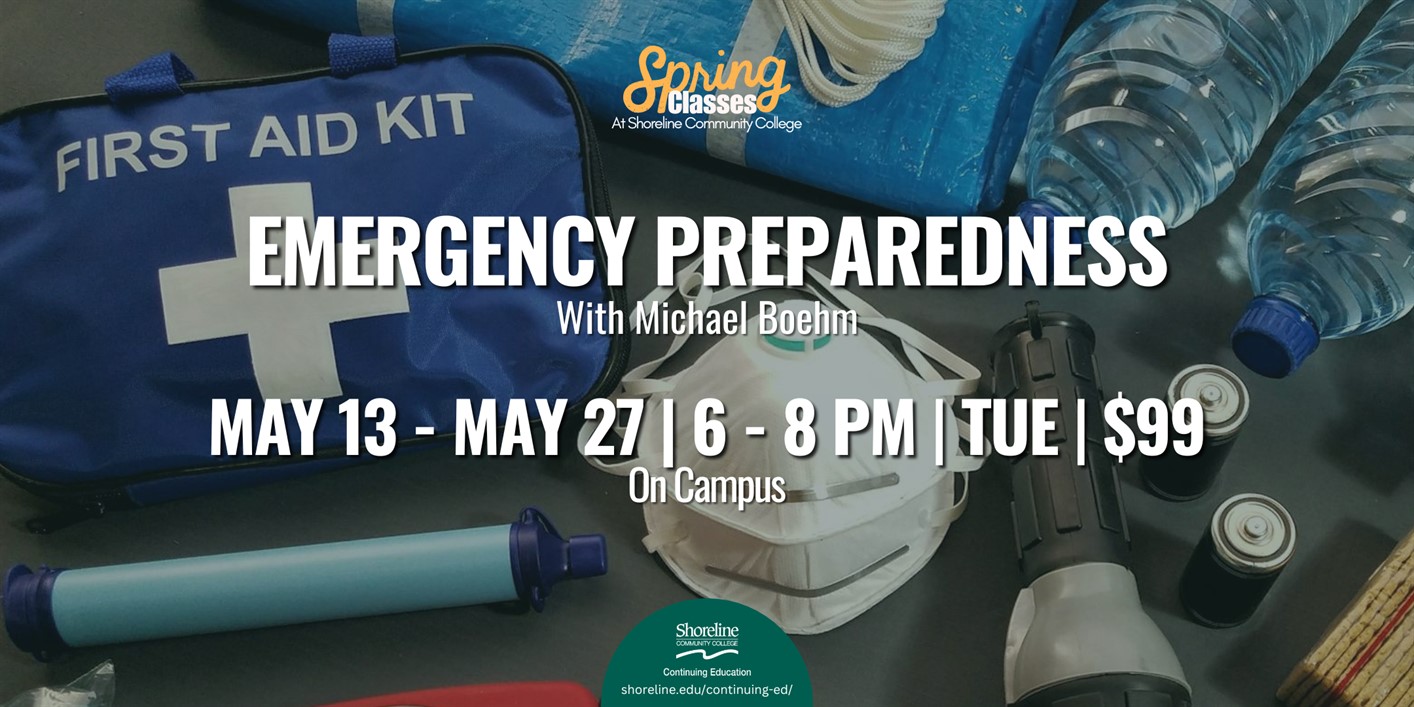 In the Pacific Northwest, where earthquakes, wildfires, power outages, and severe storms are real and growing concerns, preparation isn’t just smart—it’s essential. That’s why Shoreline Community College is offering Emergency Preparedness 101 – Getting Started, a three-session evening class designed to give you the tools and confidence to protect yourself and your loved ones when it matters most. Led by instructor Michael Boehm, this course begins Tuesday, May 13, and runs through May 27. Sessions take place from 6:00–8:00 PM in Room 1402 of the SL014 building. The fee is $99, and the knowledge you’ll gain could prove invaluable.