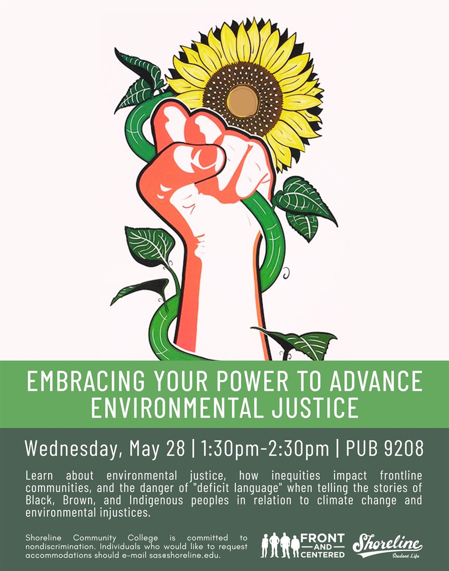 Students, faculty, and staff are invited to attend an upcoming environmental justice workshop taking place on Wednesday, May 28 from 1:30-2:30pm in PUB 9208.