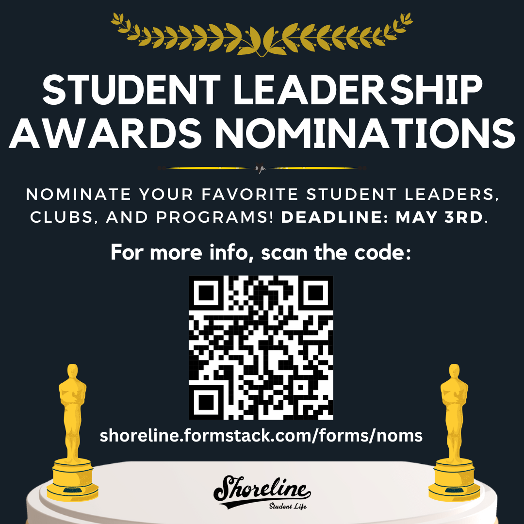 This year Student Life will be hosting the Student Leadership Awards on May 25th from 5:00-8:00 pm in the PUB Main Dining Room.